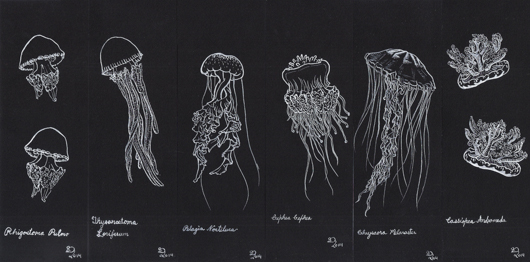 | Elf of the Ocean Bookmarks Ink on paper 2" x 6" |