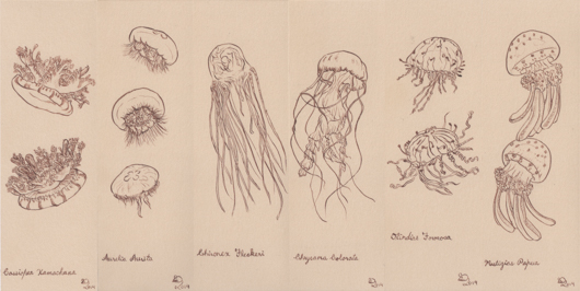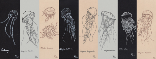 | Elf of the Ocean Bookmarks Ink on paper 2" x 6" |
